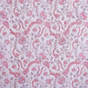 100% Cotton Fabric Sanganeri Floral Print Fabric Dress Material for Kurtis Top Suit Skirt Kaftan Long Sarong Swim Suit Summer Dress Making Cotton Fabric (5 Yard)