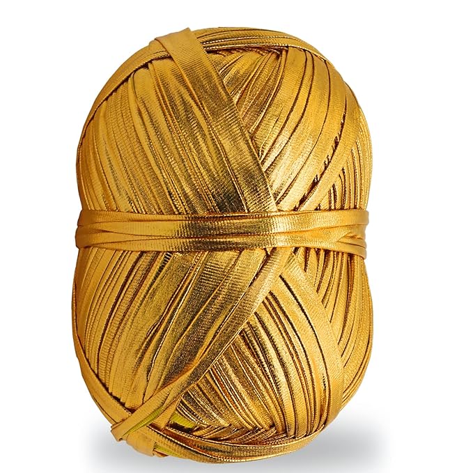 Metallic T-Shirt Yarn 140 Yards Knitting Yarn Fabric Crochet Cloth Shiny Tshirt Yarn for Crocheting Beginners DIY Hand Craft Bag Blanket Cushion Projects (Golden)