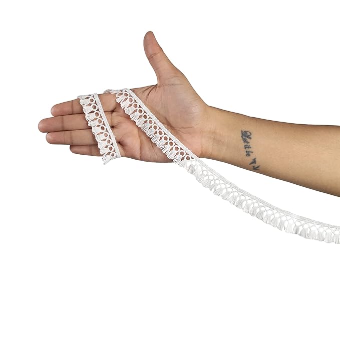 White Crochet Croshia Cotton Lace and Border Material for Trims Flower latkan Hanging Jhallar Tassel Embroidered Laces Fabric Lace Sewing Cotton Work lace (13 Mtr)